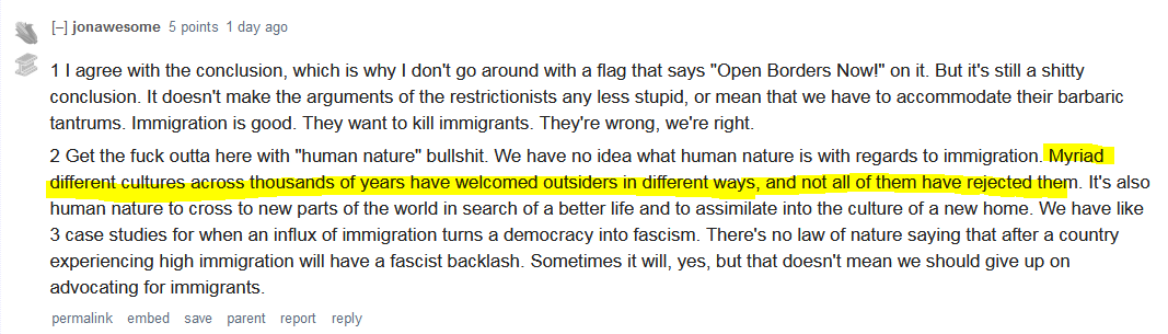 Is he right? What are the examples of cultures that welcomed large numbers of foreigners into their lands?(please guys try avoid politics talk and stick to history)