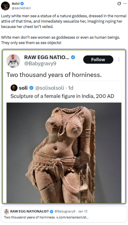 >>18291869The irony of that guy criticizing Raw Egg Nationalist as a>Lusty white mengiven that he was found out to be an Indian, I believe living in the UK.