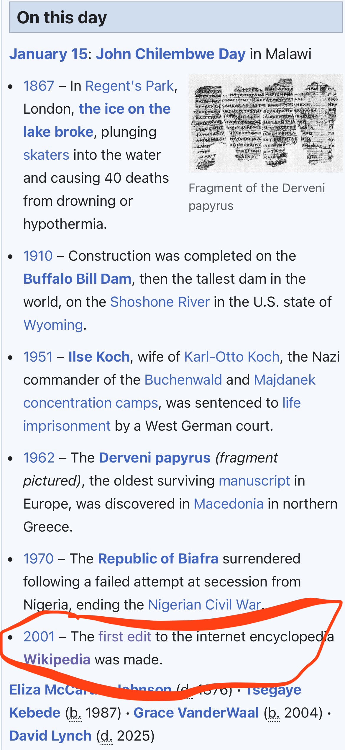 25 years ago today, Wikipedia was created by Jimmy Wales and Larry Sanger (both of whom previously worked on Nupedia, another online encyclopedia). At its founding, it was originally English-only, and had the domain name www.wikipedia.com. Those that were on the Nupedia mailing list were the first to hear about the project.Wales has gone on to say that the economic essay, “The Use of Knowledge in Society” by Friedrich Hayek was foundational in shaping Wales’ views in how to organize Wikipedia. The word Wikipedia is a portmanteau of wiki (a Hawaiian word meaning “quick”) and encyclopedia. The first edit, also made 25 years ago, was to the site’s homepage, a line of text reading: “This is the new WikiPedia!”
