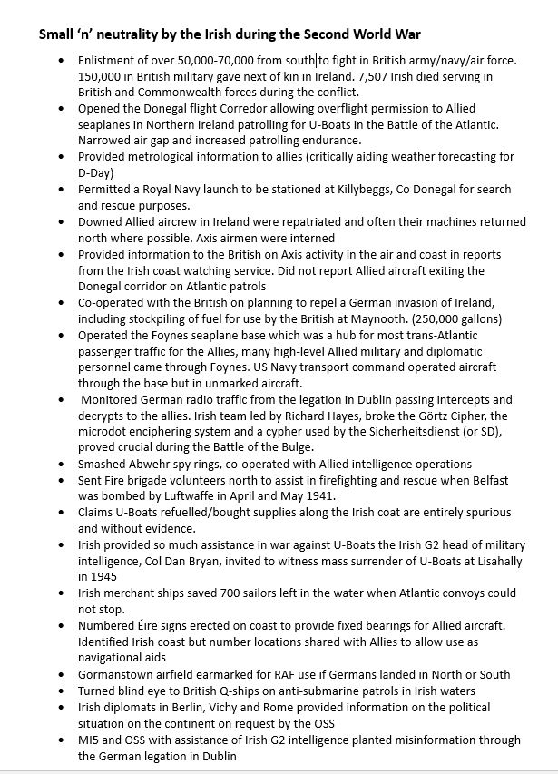 >>18323580The reality of Ireland's role in WW2 is best left to historians such as James O'Neill, who regularly posts the following (and more) on X or elsewhere regarding the matter-not whatever you manage to scrape from WIkipedia, which this time seems to be one of several anti-Britain films created by Nazi Germany.