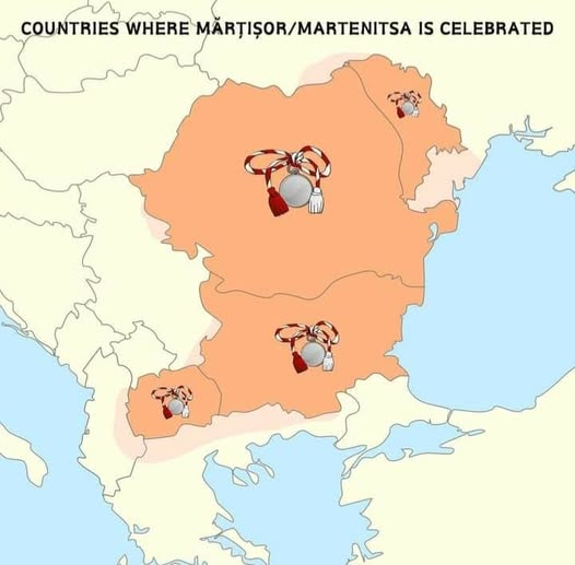 On March 1st, Romania, Bulgaria and Moldova celebrate the day of spring and love, Mărțișor.People gift each other a talisman made of red and white threads, often with decorative figurines, that they wear for the rest of the month and hang on a flowering tree when the month is over (or when they see a stork, meaning spring has come).What do you think the origin of this tradition is? With which culture, for what purpose?Post surviving old timey traditions, outside of christian stuff.