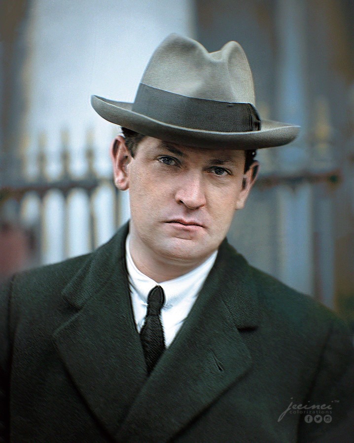 Collins exiting a car, accompanied by Joe O'Reilly.O'Reilly was Collins' bodyguard and is very overlooked.>comes from cork, emigrated to London>met Collins whilst they both worked in London, both returned home as close friends>becomes his closest ally; most new entrees to the IRA's upper ranks have to go through O'Reilly first>O'Reilly also tasked with dealing with internal threats and spies>Last time he saw Collins was as they shared a cup of tea immediately prior to Collins departing on the journey that killed him-one of the few times O'Reilly was not with him.