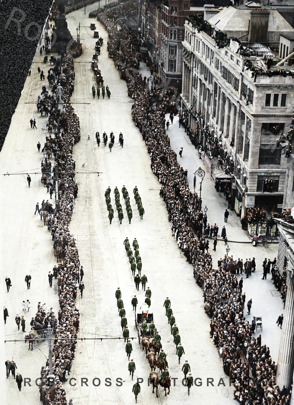 Posting some new or relevant Rob Cross Photos. Cross is a guy who "colourises" lots of old Irish photos, but only when he feels it can be done accurately. Big contributor to the "Old Ireland in Colour" series. Here's a photo of Michael Collins giving an address in March 1922.