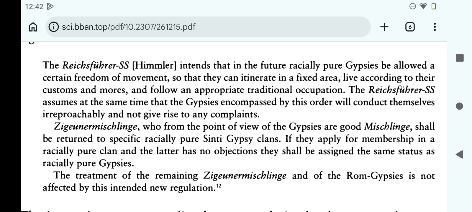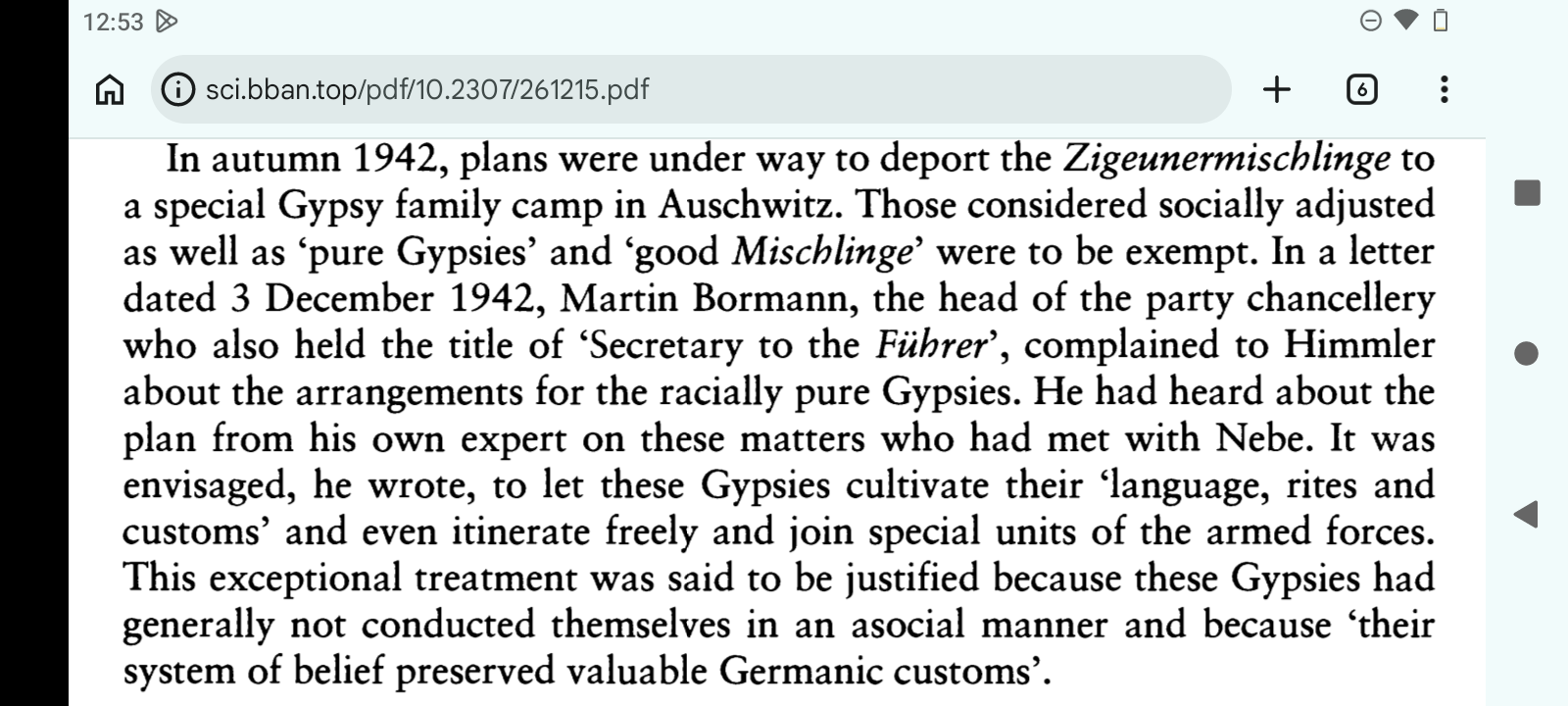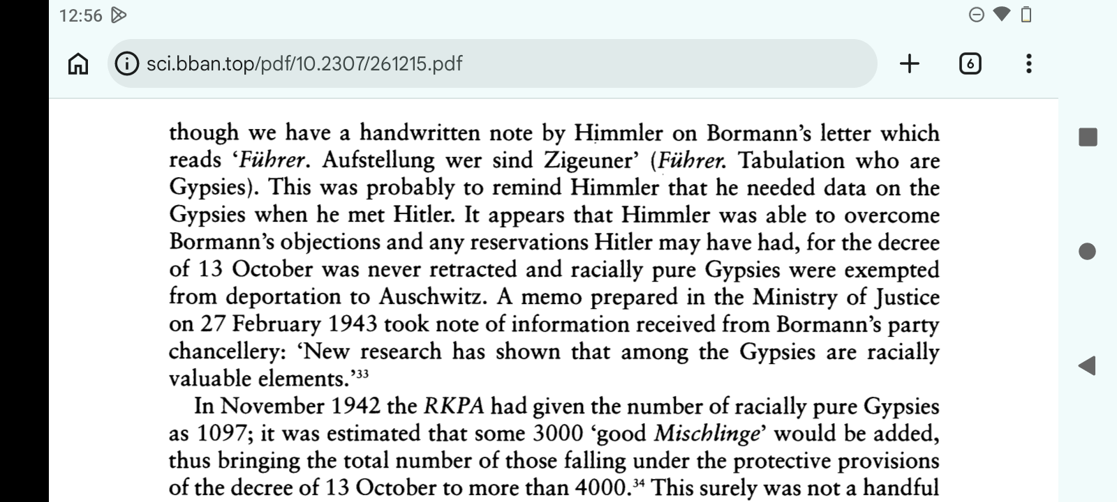 https://www.jstor.org/stable/261215"Explain to me again why Himmler was so obsessed with pure-blooded Gypsies that he was prepared to give them a sanctuary.It seems that what Himmler couldn't achieve in Germany, White people have achieved in California: creating a White-Indian upper caste, similar to the one in the ancient Indus Valley."