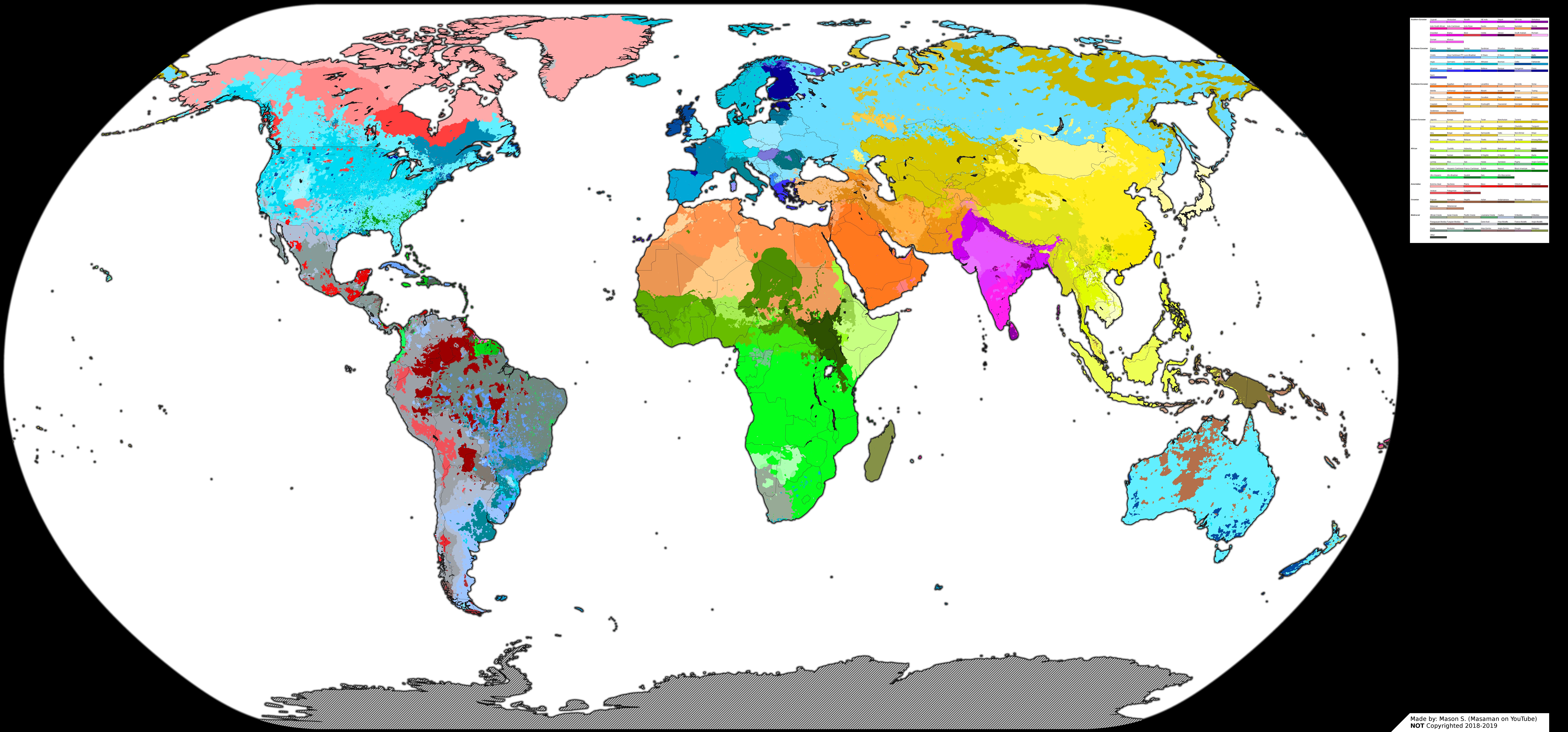 >>18391356That's a lot of ocean.>How many human ethnicities are there? A lot. But ethnicity isn't exactly a standardized category that has a clear list of groupings that don't need to explain themselves. Two people could mean some very different things when using the term. When using parameters other than just ancestry, dividing people into clear non-overlapping ethnicities might involve choices that could feel arbitrary to some. There is always going to be some overlap between some ethnicities, particularly when we use factors outside of ancestry alone.Ethnicities that are marked primarily by some religious association are a good example of this really. Think Jews and Bosniaks. A lot of people consider these sorts of groups as ethnicities, and a lot of others don't. These groups can also happen to overlap with ethnicities other than their own group. Ancestry of assimilated secular Jews for example can be mixed or even be nearly completely of non-Jewish origin, but still be considered a Jew because of parental associations.Also something to consider is that ethnicities can often be broken up or grouped together into other ethnicities. Americans into their respective regions (Southerners, Northerners, etc.), or Americans and Canadians into a broad Anglophone North Americans.However you choose to define an ethnicity would affect the number of them existing in your list.>Is it possible to list all of them in a single map?Not really in my opinion, unless you are to make broad sweeping generalizations. There's a lot of tiny outliers.I really like Masaman's ethno-racial map, but even Masaman would admit it wouldn't really be possible for him to represent everything under the sun.