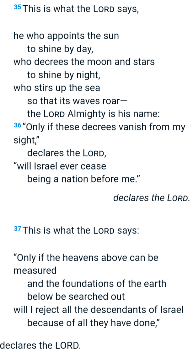 And god affirms them as the chosen people still, and most crucially gentiles are still expected to look after Israel's well-being to be considered "the good ones", even when Israel are misbehaving. Do you realize this literally validates Dispensationalism right?