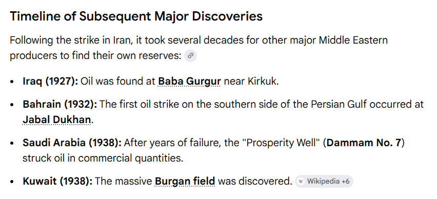 >>18400699Nobody knew how oil rich it was until the late 30s and the Arabs were smart enough to let the West in on a large chunk of the revenue instead of hoarding it and waiting for the West to take it all by force.