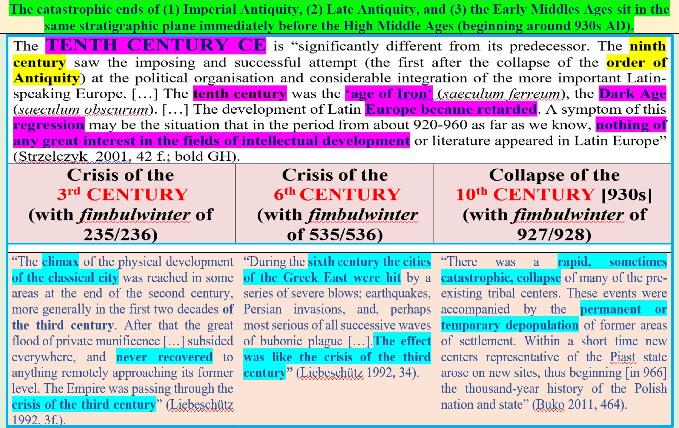 The Pahntom Time theory comes into play here - the best version is proposed by Gunnar Heinsohn, who states that around 700 years were added into our chronology. In other words, the crisis of 2nd century Rome, 6th century Byzantium and 10th century Europe, were all 1 crisis.