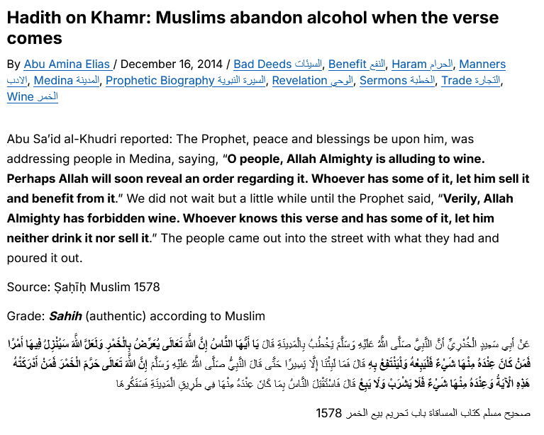 Islamic culture places emphasis on presence of mind to maintain society, spirit and mind, which alcohol, it is perceived, provides detriments to.