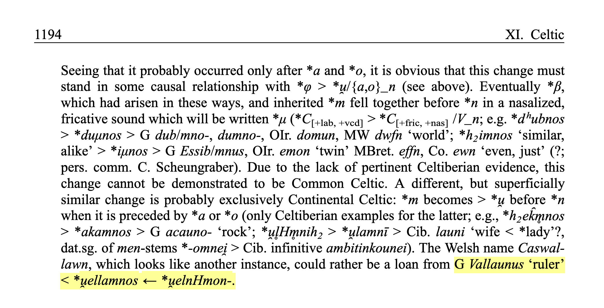 >>18405612>Gaulish Vellaunoshttps://lexlep.univie.ac.at/wiki/u%CC%AFallau%CC%AFn->The element uellaun-/uallaun- is widely attested in Celtic onomastics: Gaulish personal names (uellaunus, uercassiuellaunus, ualauna), theonyms (icouellauna), ethnonyms (κατουελλαυοί, segouellauni) and toponyms (uellaunodunum); OBrit. personal names (cassiuellaunus, dubnouellaunus, ualauneicus) and ethnonyms (catuuellauni), OW -gwallawn (cadwallaun, MW casswallawn); Ogam valamni (CIIC 125), OIr. folloman; lexically in OIr. *follomon- 'ruler, chief' ( follaimnigid 'rules', etc.). See Holder 1896-1907: III 94, KGP: 288 f., GPN: 272–277 (with older literature), Lambert 1990: 206–208, DLG: 311, Delamarre 2007: 188, 235.