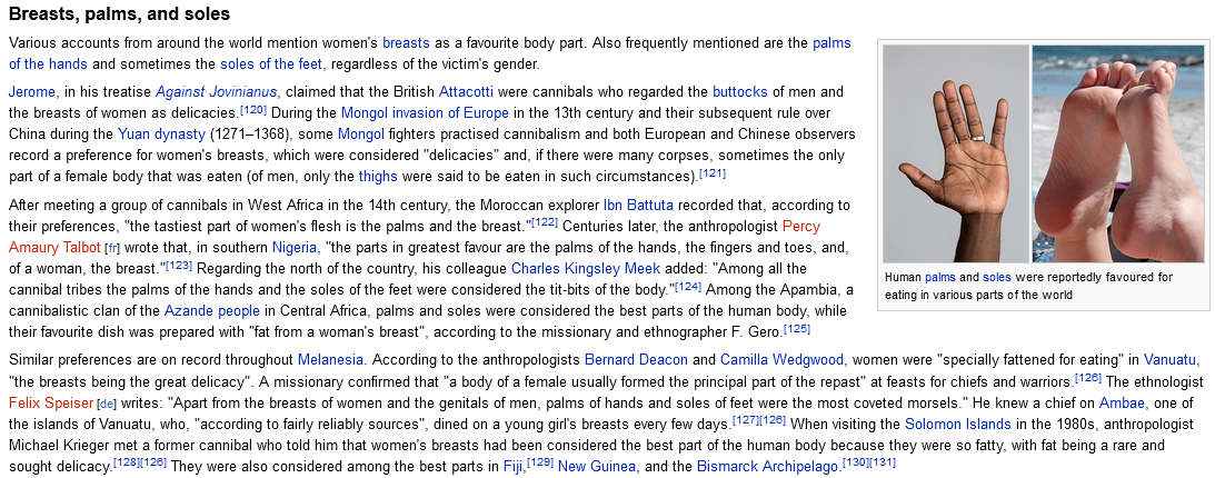 I mean you're right, but if they snacked on pygmies then they must have genuinely liked at least some parts though. See here the report on west African cannibals
