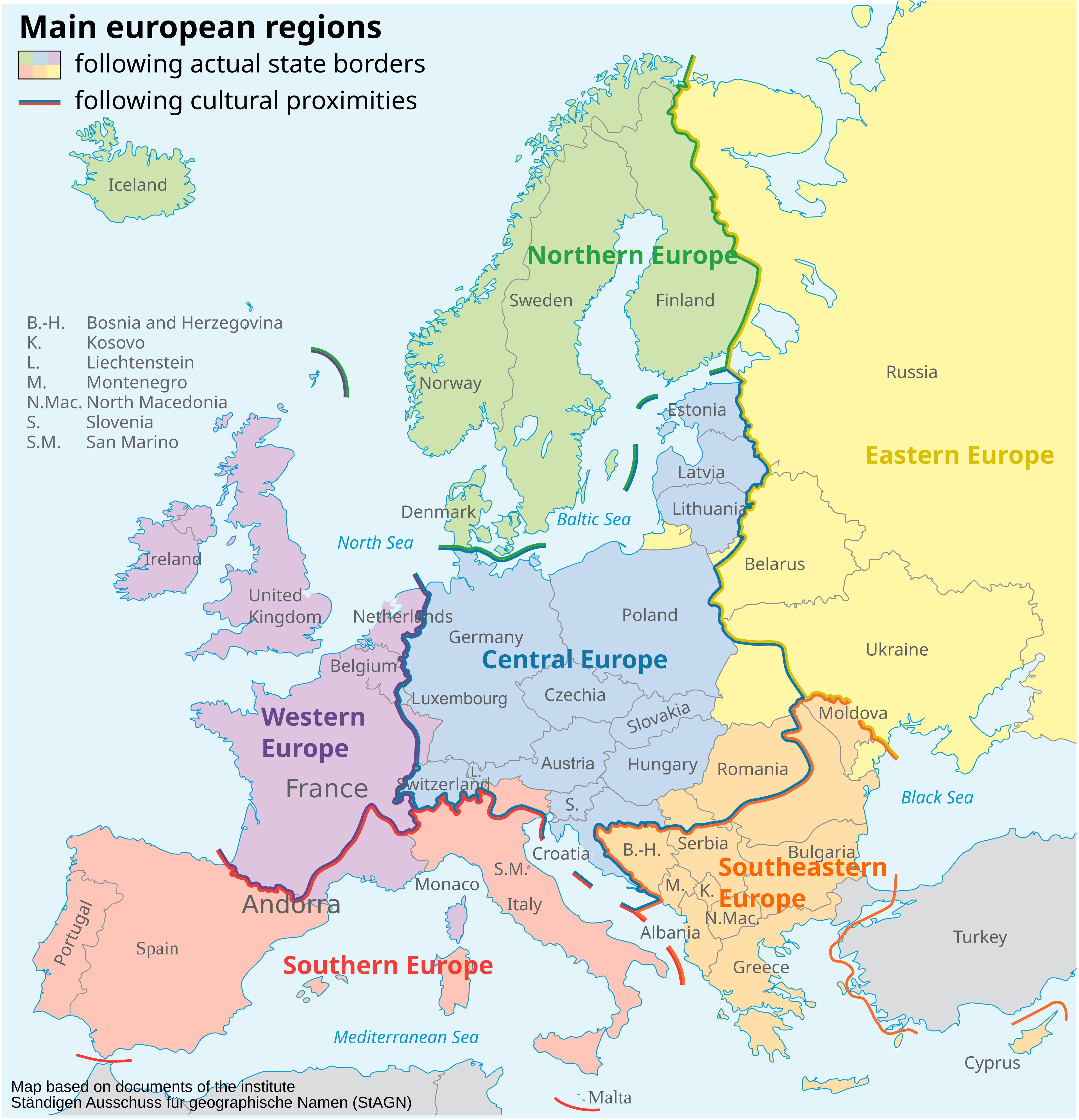 Berlin's closer to Poland and Denmark than to Western Europe and yet Germany isn't considered to be a Slavic or Nordic country