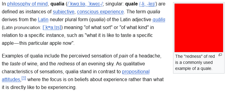 insane how dishonest retards talk about qualia (a theory laden term, defined in such a way that it's incompatible with physicalism - question begging) but when pressed it's suddenly the neutral term 'experience'