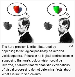 >>18418337Also to expand on the hard problem of consciousness, most of it rests on conceivable scenarios being granted to be physically possible, which is a big non sequitur.Notably, the philosophical zombies and the inverted qualia are both good examples. The zombie one rests on the premise that it is conceivable to imagine a human being operating normally without consciousness. But this is no different than saying that we can conceive of a human being without any organs being able to operate normally. As such, the claim that therefore qualias must exist because we can think of a situation with a difference is dubious.Similarly, the argument for the inverted spectrum rests on the notion that 2 individuals could somehow percieve the same color but have different color-ness. This again rests on the belief that the brain could possibly just make up a new qualia afterfact of his sensory inputs.