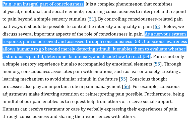 >>18418234How does it do that you idiot? It demonstrates my point that you need a conscious experience for pain. Insects afaik have not been proven to have such a thing so they don't feel pain even if they do experience nociception. Of course it's entirely possible they still experience it but since they are so alien to us it isn't immediately clear