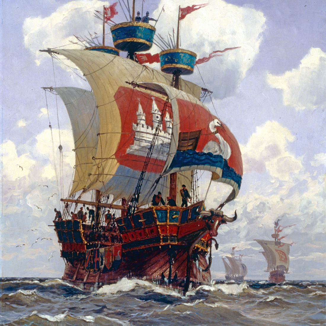 >>18418180Well several hanseatic cities were militarily quite powerful. As organised piracy in the baltic and north sea began in the 12th/13th centuries many hanseatic cities commissioned explicit warships (in contrast to the majority of the ships of the time which were dual purpose) to combat it. And the Hanse had impressive military feats - mainly against the Kingdom of Denmark: in 1368 they occupied and raised Copenhagen as well as the danish royal castle/palace and in 1435 they again warred against Denmark, won and were exempt from the tolls of the Øresund.Pic rel is an interpretation of the Bunte Kuh, which was the flagship of the hanseatic flotilla which hunted down the pirate Klaus Störtebeker.>and farther trade was done by the big colonial states. Well by the time the colonial states came into being the Hanse had practically ceased to exist. >>18419021Hardkek>>18419503He is right. There was no Kingdom of Pommerania and the Duchy of Pommerania (partitioned after 1648 into Swedish-Pomerania and Father Pomerania [Brandenburg]) remained part of the HRE. The swedish King was the Duke of Pomerania and thus had a seat in the Imperial Diet and the Duchy of Pomerania was never incorporated into the Kingdom of Sweden.