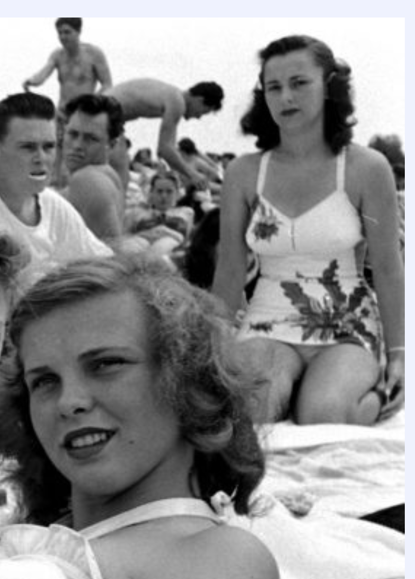 Spring breakers on Balboa Beach, California in 1947.