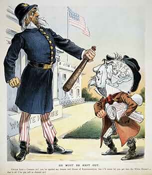 "He must be kept out!" - anti-free silver cartoon from 1896.