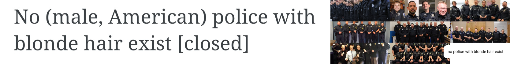 >>18424690You've done great jidf. Explain why nobody has ever found a blond police officer.