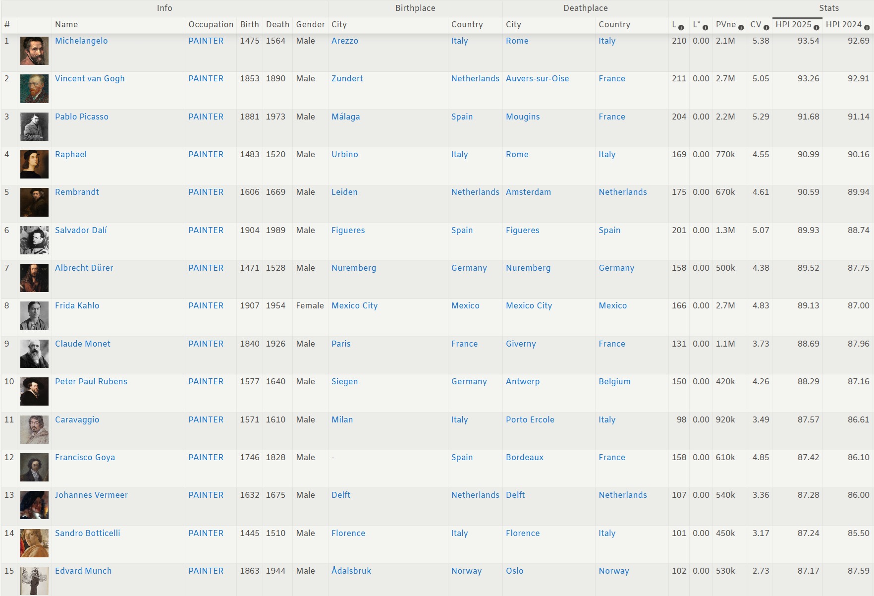 And that's not even questioning the merit of this list, Van Gogh died a nobody, his popularity was almost an entirely XXth century revision.