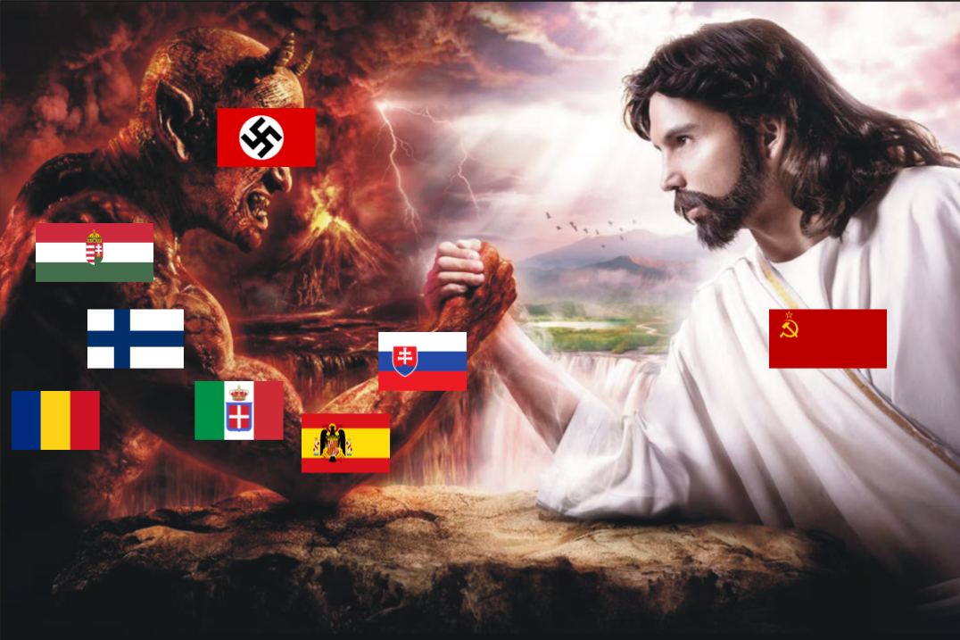 >>18432414>In a 1v1 the commies don’t stand a chance.>Hugh if it was only Germany, Italy,finland, Hungary,Romenia, all of occupied Europe vs the USSR in a Honorable 1v1 my deluded crack head would have won