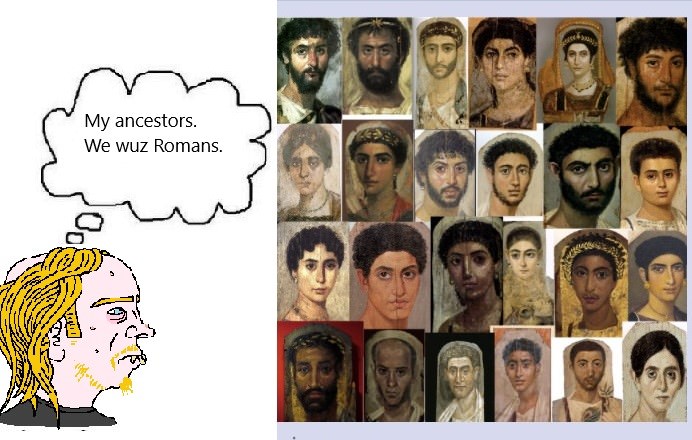 >>18435686they were. Majority EEF which is Anatolian Farmer in origin. Ancient Greeks would have been no less swarthy and dark-haired than moderns, if not more-so. The Greco-Romans were a part of the Middle-East and North Africa cultural sphere. Even today. Their closest cultural peers would have been Egyptians, Phoenicians and the rest. Calling Greco-Romans European is basically a Retcon. Western civilization (Germanics including Anglos, Celts, and so on) is a newer thing that comes to the fore really with the emergence of Christendom and then modernity.