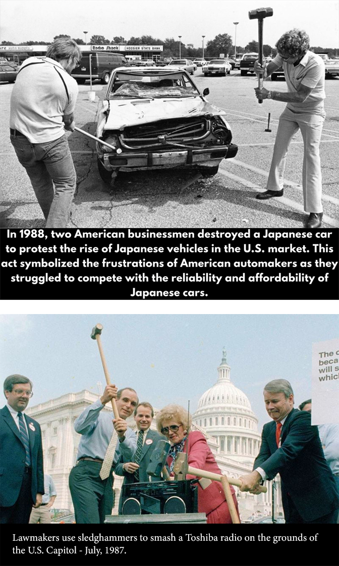 80s Japan was to the US was China is today. In both cases, instead of competing fairly on an economic ground, Americans decided to just try to destroy their rival. In the case of Japan, it was a success and their economy has been stagnating since the 90s. China will win this time, though.