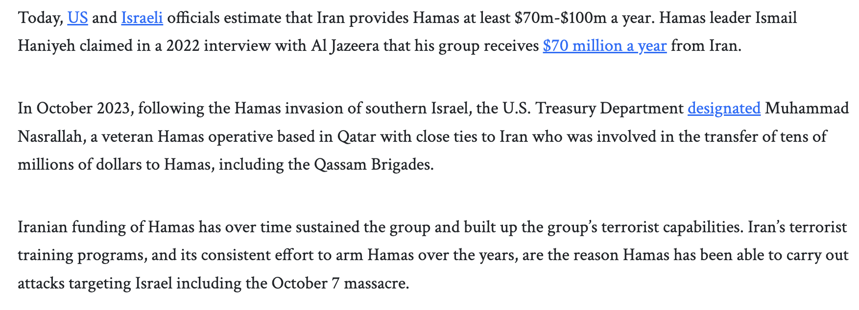 And yes, supporting Hamas is real aid for Palestine, unlike sending money through Israel for it to spend however it wants.