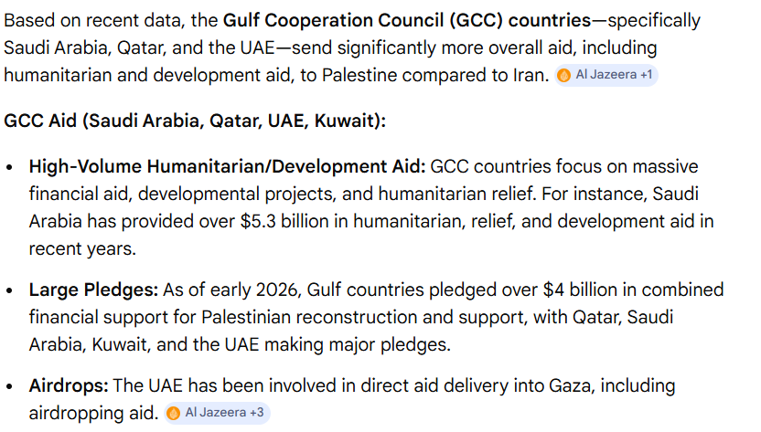 And yes, I already said, the GCC don't supply arms or support Hamas. They just pledge funds that will go through Israel, who will decide how the money gets spent.