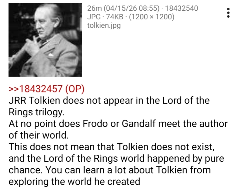 >>18441425But we know that Tolkien is a mortal man existing within the principle of cause and effect. God is not supposed to have a cause. Your analogy just introduces another layer on existence in which God created us but is still created in his own universe.