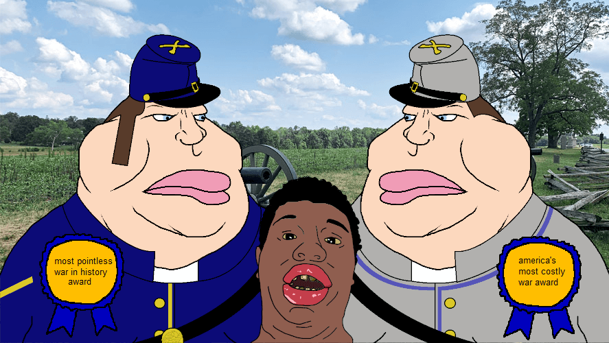 >"Brother, I am sorry. You were absolutely right about everything. You can keep your nigger pets for all eternity!">"Well shucks, Yank! You ain't half bad.'">Union cuts losses and leaves the South>Union goes on to develop as industrial superpower it was always destined to be>Confederacy develops into... you guessed it, Haiti 2.0! But this time, with negro Communism