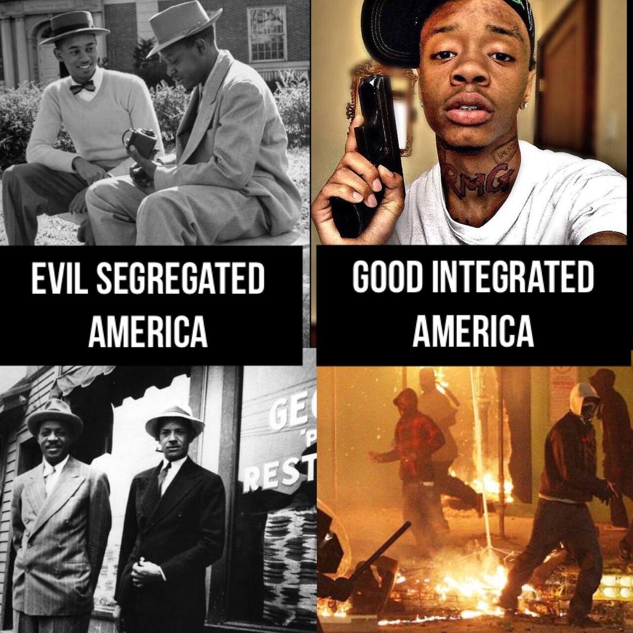 >>18445520The left scenario only came about because of the Great Migration, which wouldn't have existed without the South, which had fucking counties and states with a majority negro population like Haiti.