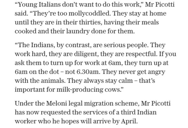 >>18446128This is all true. It's not just Italians, most Europeans don't want to do ''lowly'' jobs anymore. That doesn't mean you need to import Indians necessarily but it's true that a lot of people see some types of jobs as beneath them