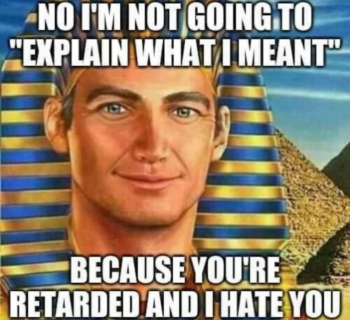 >>18447608Not only that but those commandments only apply to themselves and likely due to the fact that they did alot of infighting that caused their real exodus when they got their asses handed to them by Pharaoh Amenophis all the way to babylon.