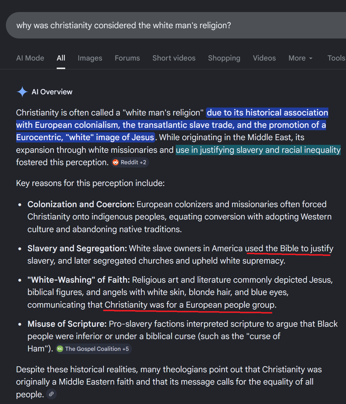 >>18448190>AI Overview70% of Christians are brown. That's not a White man's religion.