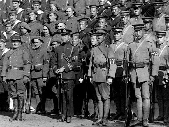 Chinese labour corps in France made out of poor labourers from Shandong towering over western Europeans.