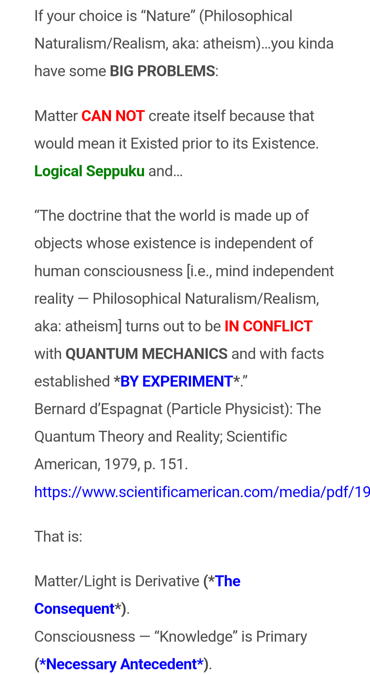 >>18449068>>18449072>>18449085Both atheism and agnosticism are naturalist positions thus not creationist positions. There are only 2 available ontological primitives for how the universe/existence arrived (naturalism or creationism), TRUE DICHOTOMY NO POSSIBLE 3RD POSITION - disjunctive syllogismBoth atheism and agnosticism are positions of non-positions, the difference is agnostics say they dont have enough information to make the callBoth positions are still in contradiction with conservation of mass, 1st and 2nd laws of thermodynamics, and quantum mechanics. The law of entropy proves matter and energy had a starting point, and isn't infiniteif atheism were true P then it would be supported by natural laws and natural science Q. not Supported Q atheism not true P. If P then Q not Q therefore not P. -modus tollensThe existence of information is not matter nor energy. All information is traced back to an intelligent source>God is empirically and scientifically proven