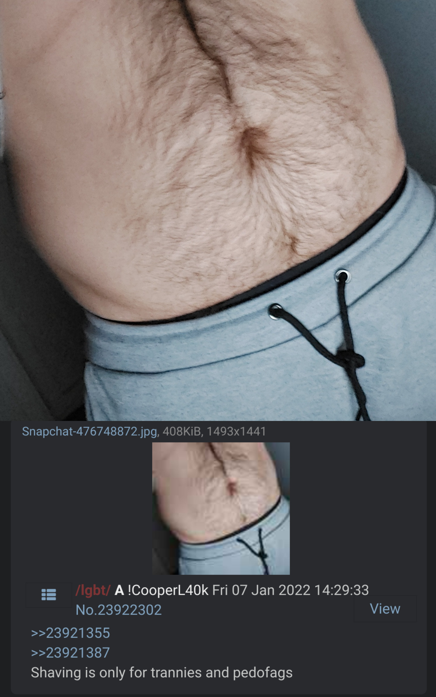 >>2663440Love the hairy ass - piss off all those turds that don’t