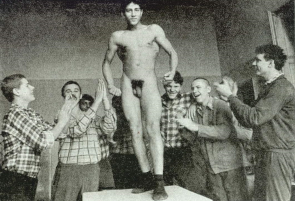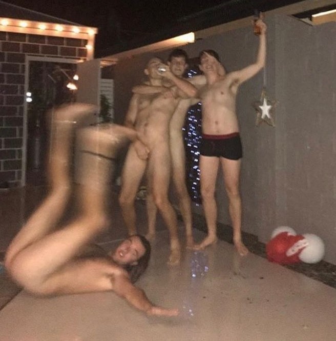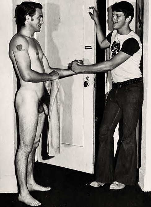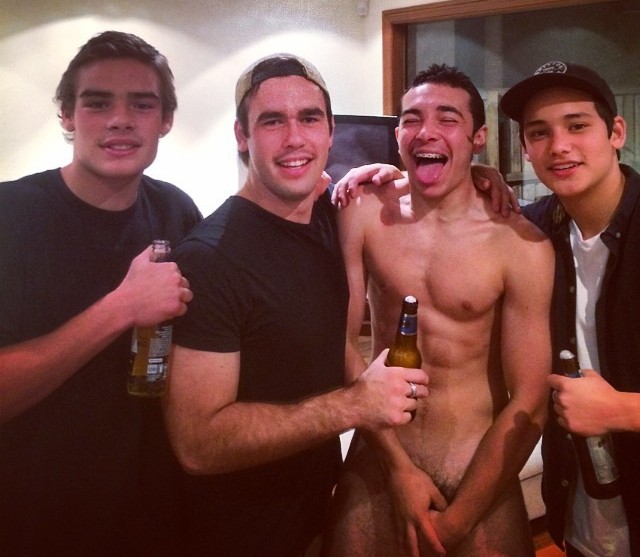 Guys hanging out and showing off among their less naked friends, or agreeable strangers. Not sex/ porn scenes.