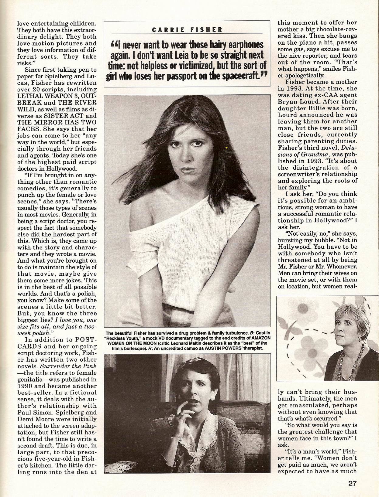 >>514488012/12. Fun to see how Carrie saw things in 1999, especially stuff like the reference to Billie being young. Also LOL at Carrie's story about the personal ads.