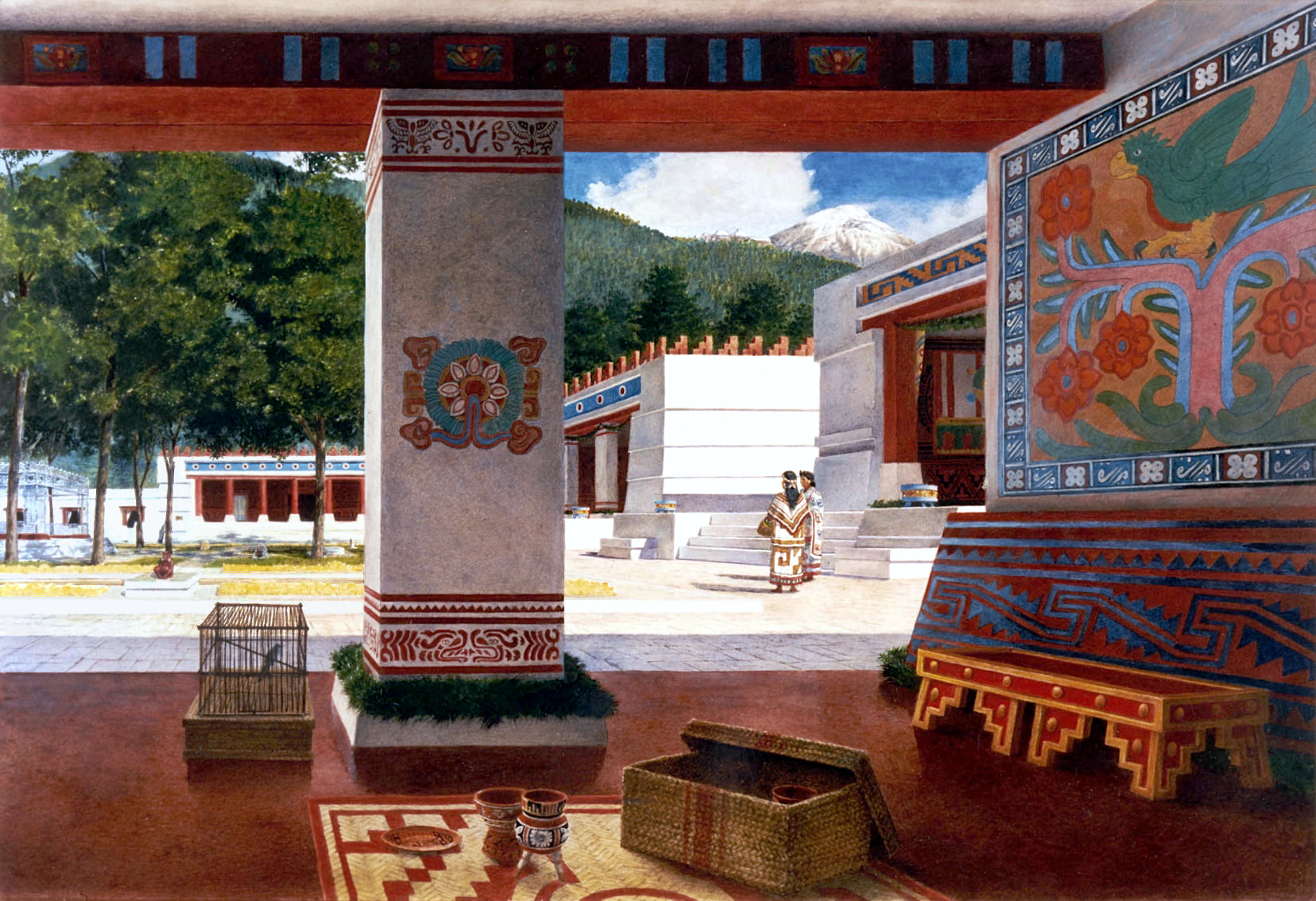 Artistic reconstruction of an interior courtyard garden in an Aztec palace in the city of Chalco, by Scott and Stuart Gentling (rights held by the Amon Carter Museum)