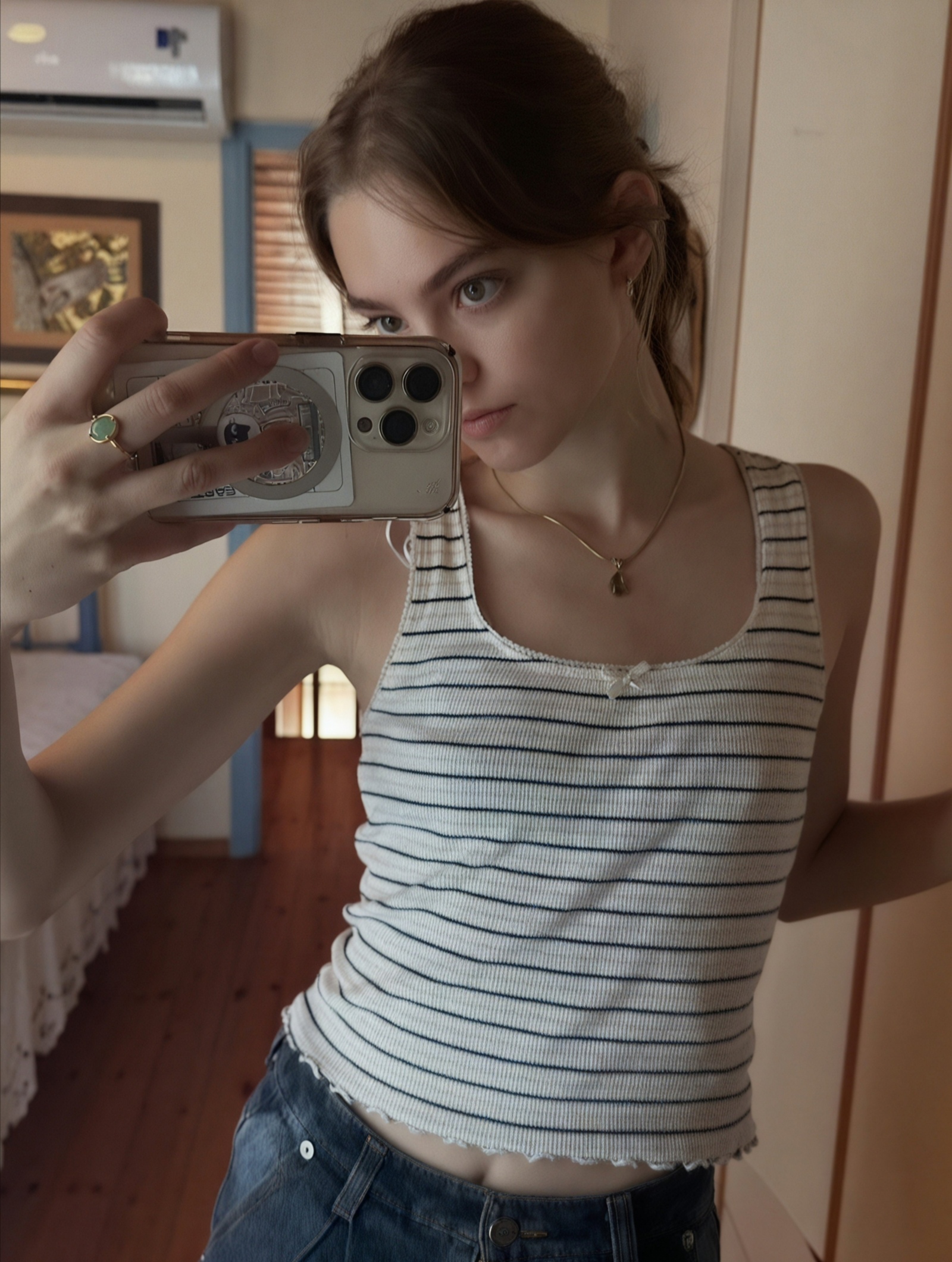 Her chest is SO fucking flat, how is it even possible? It's like she saw her sisters tiny buds and went "I can do better than that"