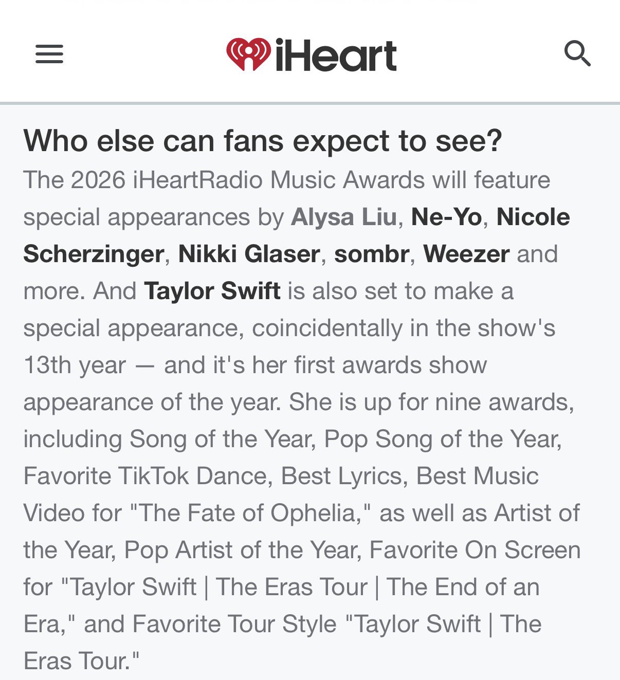 >>5204549Well she’s attending the IHeartRadio awards show tonight in LA, so clearly not lol.
