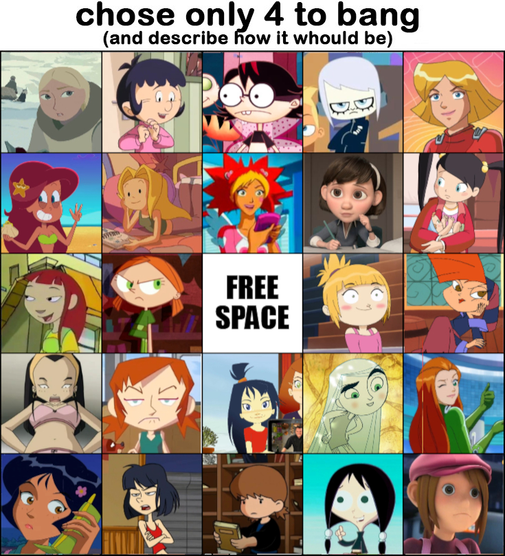 >>828296Olive from Toto TroubleLottie from Frankenstein's CatJessica from Wheel SquadSarah Kingsbury from Rekkit RabbitKim from Les P'tit CuisnotSarah from Marsupilami