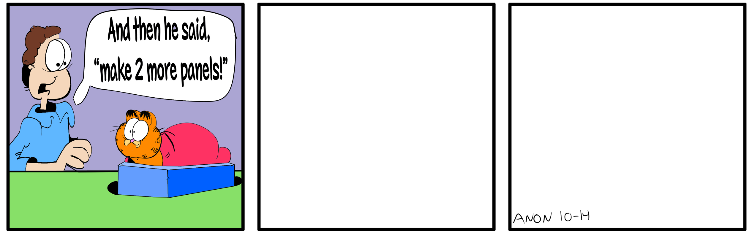 Are YOU able to entertain in 3 panels?>Setup???>punchlineNo rule saying you cant use dialogue I guess.it's not about how good a writer you are though.Gary Larson can do it in 1