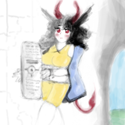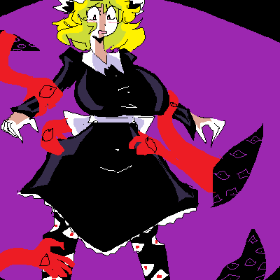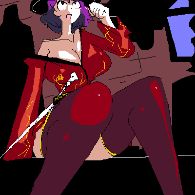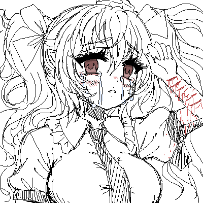 didn't have time to finish this and probably won't be able to come back to this. My first time using this art program (it was interesting)I know the way I draw her is a little unorthodox... didn't have time to make her as bloody as I like :POekaki Post (Time: 4h 50m, Replay: View)