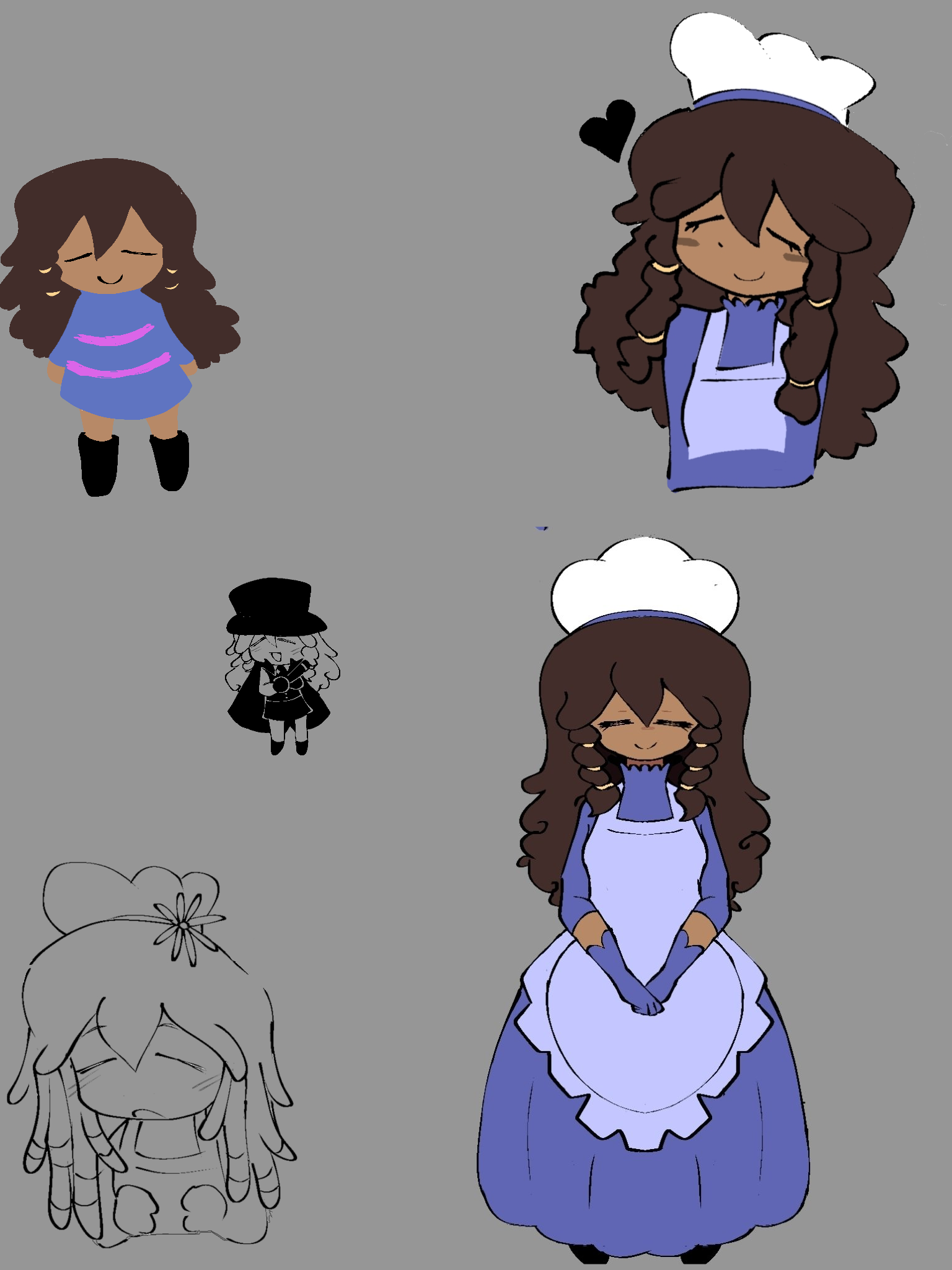 Dumping a few doodles now. I like drawing her hair down lol