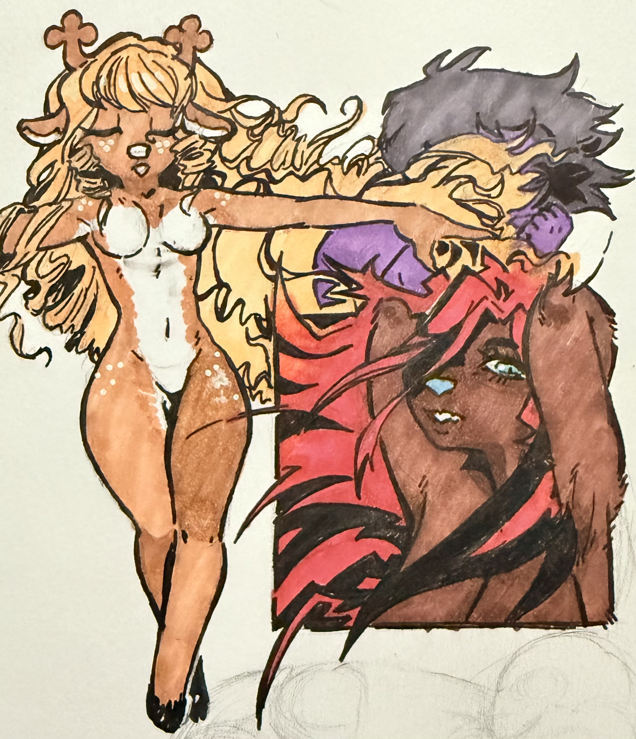 >>828093>Just markers and a writing Tul penoh really? huhasking purely because the little white highlights on her hair look watery in a way you'd get with brushing up colors from a watercolor pencili should probably go and give coloring a try again now that i think about it, i got a whole set of colors and brush and i just keep using my pencil to>>828097i was about to say "damn they ripped her tail clean off" but i took a look at her sprites and she just doesnt have a tail? lmao how did i never notice it