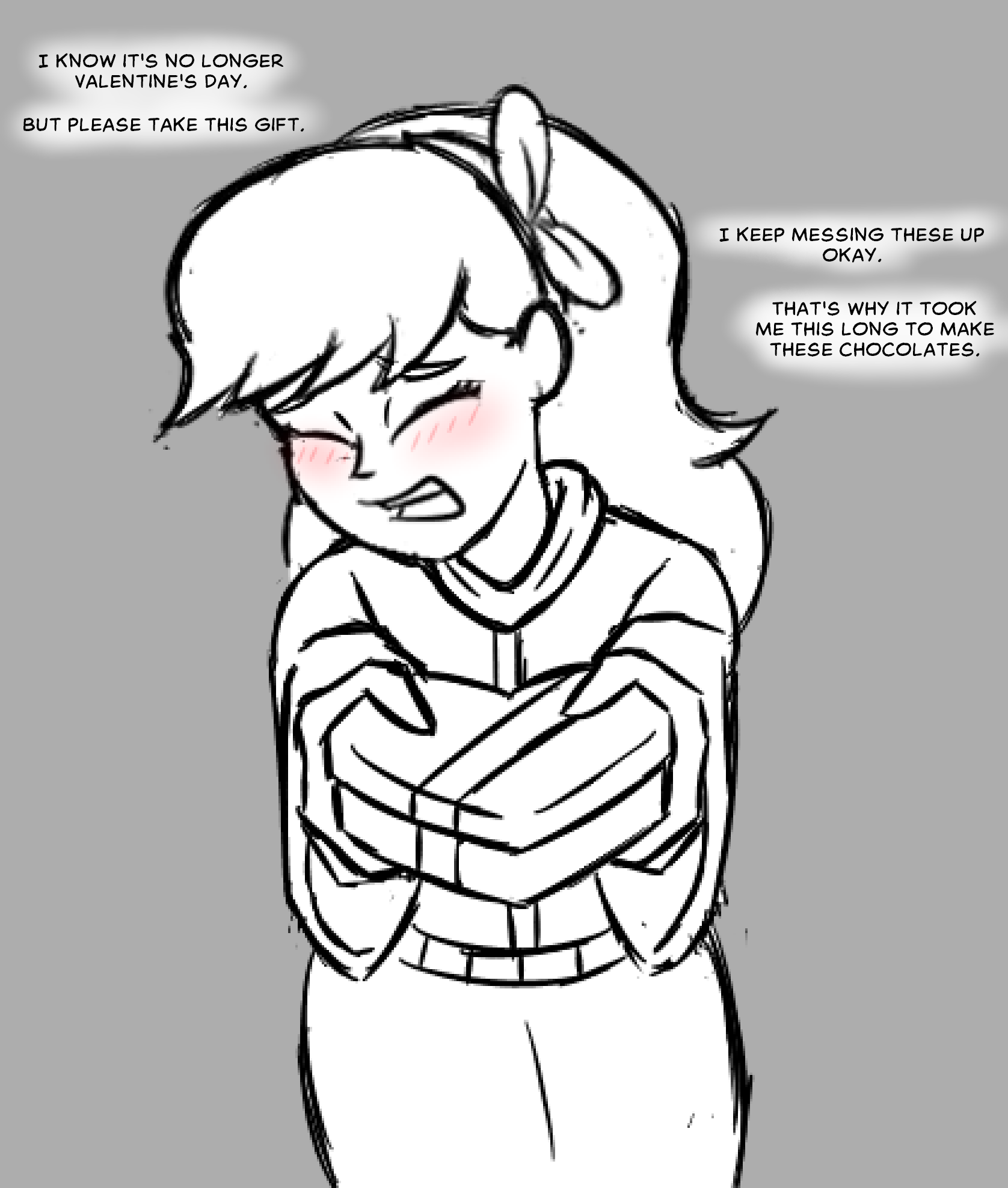 POV of Phoebe giving you a box of homemade chocolates for Valentine’s Day.