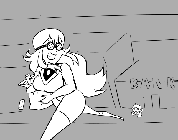 Requesting White Puddle (an stretchy evil villain) stealing some money and gold bars
